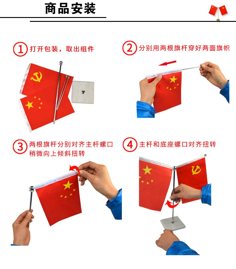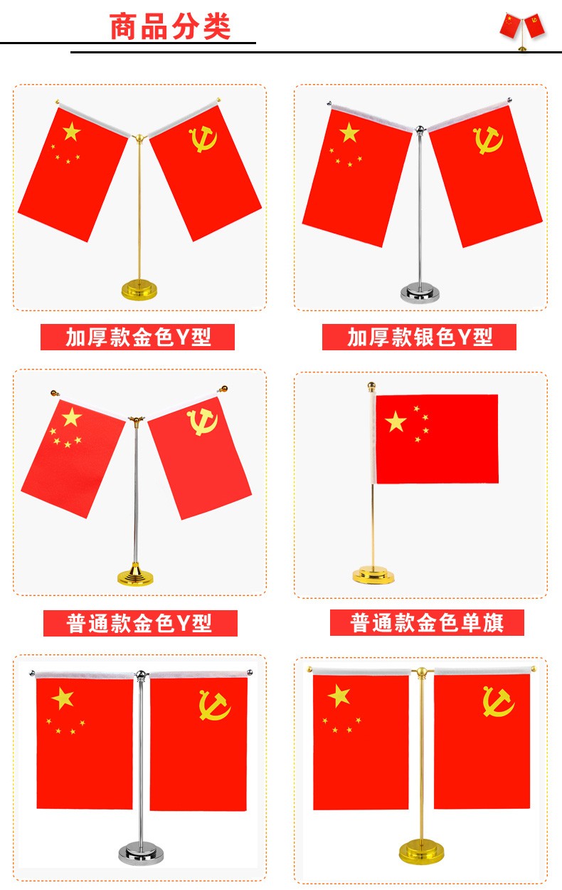 格立特 國(guó)慶節(jié)桌面黨旗國(guó)旗擺件辦公室小國(guó)旗會(huì)議室會(huì)議桌旗小紅旗辦公桌擺件擺臺(tái)臺(tái)旗幟帶底座 不銹鋼Y型(配黨旗國(guó)旗)Y589