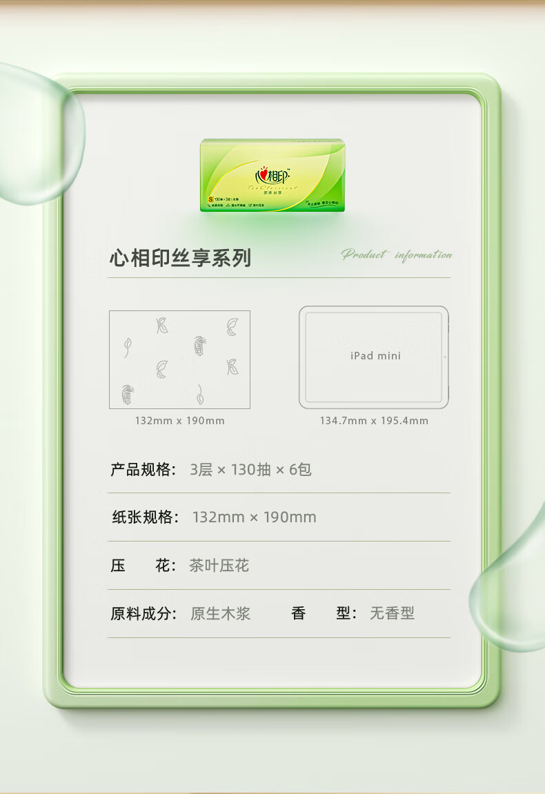 心相印抽紙 盒裝抽取式面紙 145 茶語(yǔ)絲享系列3層130抽*6包紙