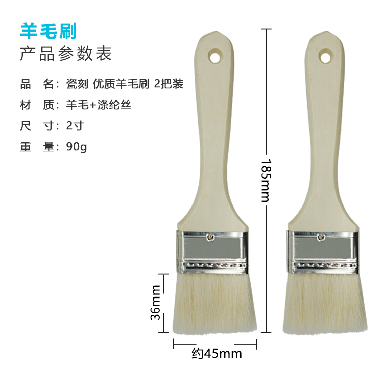 瓷刻 2寸優(yōu)質(zhì)小羊毛刷子軟 乳膠漆內(nèi)墻面漆 涂料油漆刷子 墻漆刷墻工具套裝除塵清潔