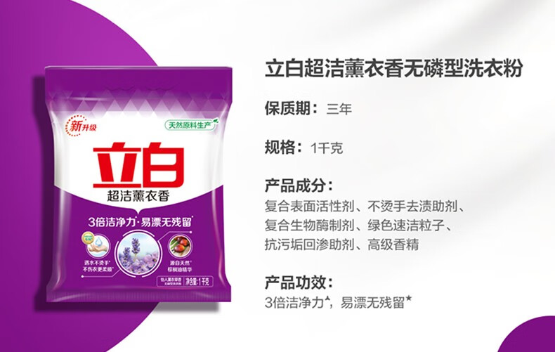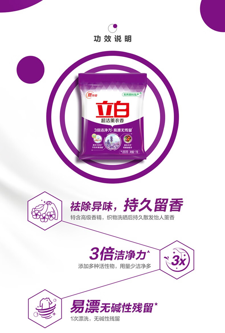立白洗衣粉超潔薰衣香洗衣粉不傷衣更柔順家庭裝三重潔凈力低泡易漂洗 【2斤】怡人薰香1kg大袋