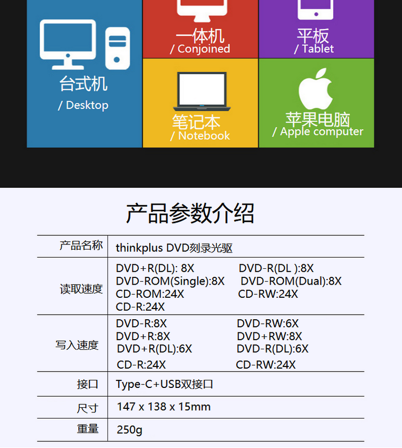 聯(lián)想(Lenovo) GP70N 光驅(qū) 外置刻錄光驅(qū)(USB口)黑