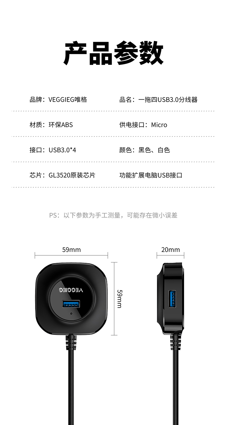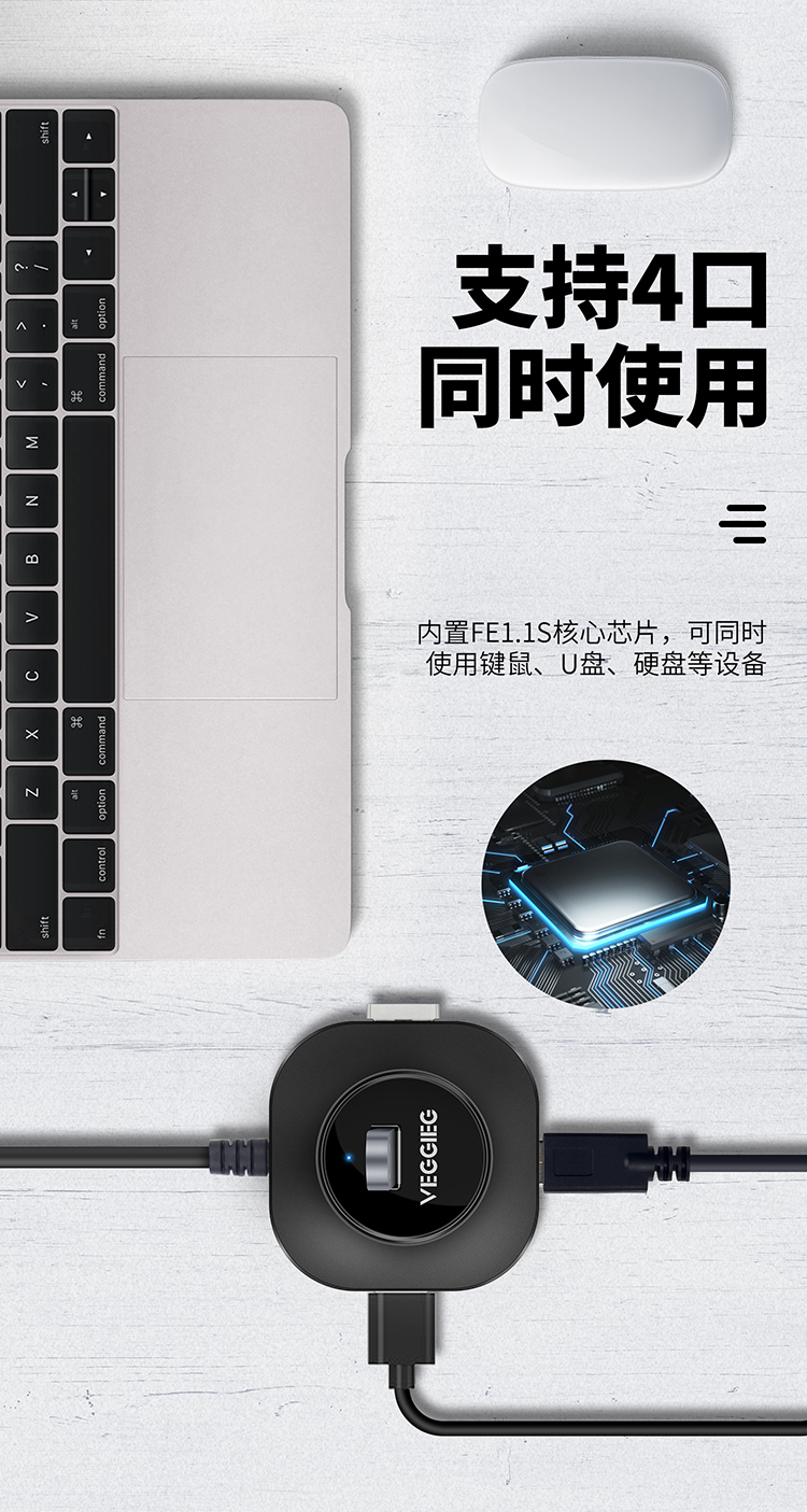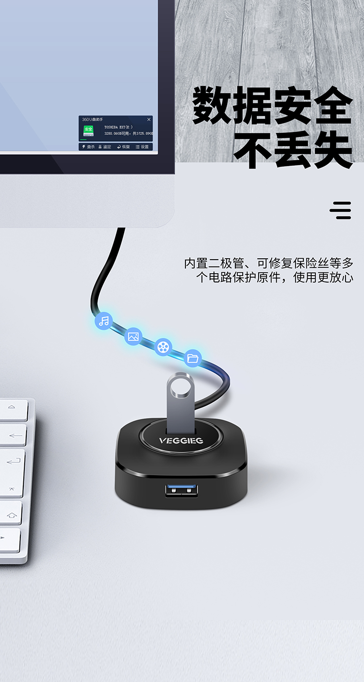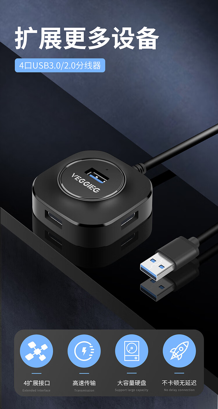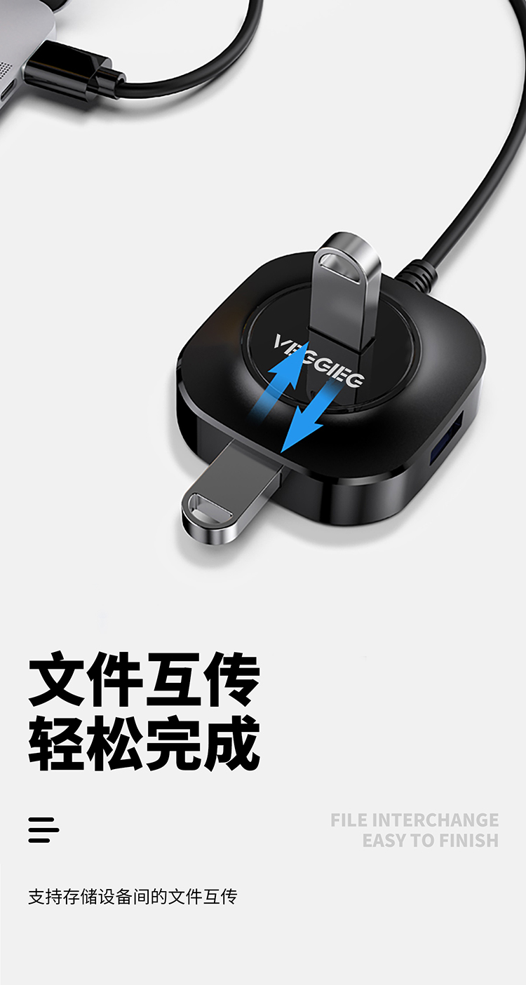 唯格(veggieg) 集顯器 V-U344 擴展器多接口轉換器typec集線器多功能拓展塢轉接器V-U344
